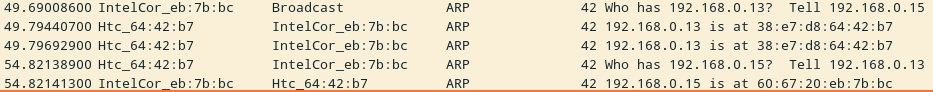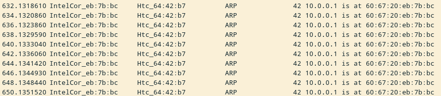 Here’s what a normal asking-for-MAC-address exchange looks like, in Wireshark: