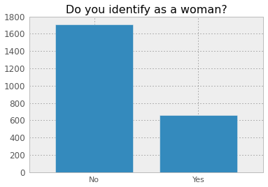 - The gender split question could be better. Specifically, I’d use: “How do you identify? m/f/other”.